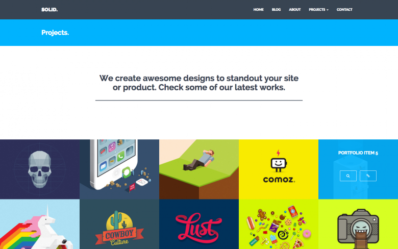 It contains a full featured blog, a portfolio with project pages, an about and contact page and can be extended however you like!